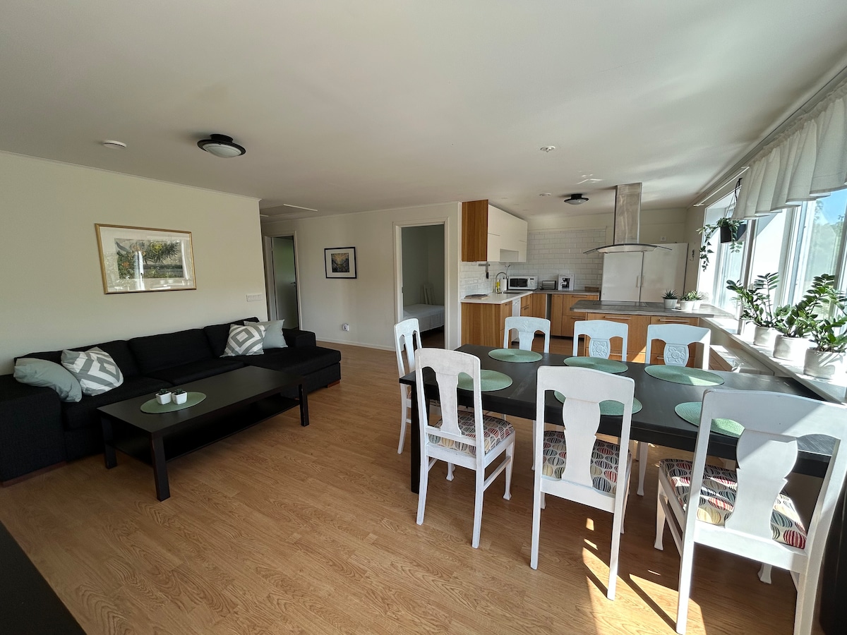 Central placering i lugnt villakvarter med parkering och utrustat med bastu, tvätt och tork. Du som gäst kommer ha egen ingång och tillgång till egen uteplats med trädgårdsmöbler, parkering. Köket är välutrustat med diskmaskin. Totalt 4st sovplatser, dubbelsäng samt i bäddsoffa i avskilda rum. Boendet är rymligt med sina 60 m2. Sommartid är utrymmet svalt och skönt. Vi tillhandahåller även några cyklar som ingår i hyran. Självincheckning sker via nyckelskåp med kod. Nära till bad och city