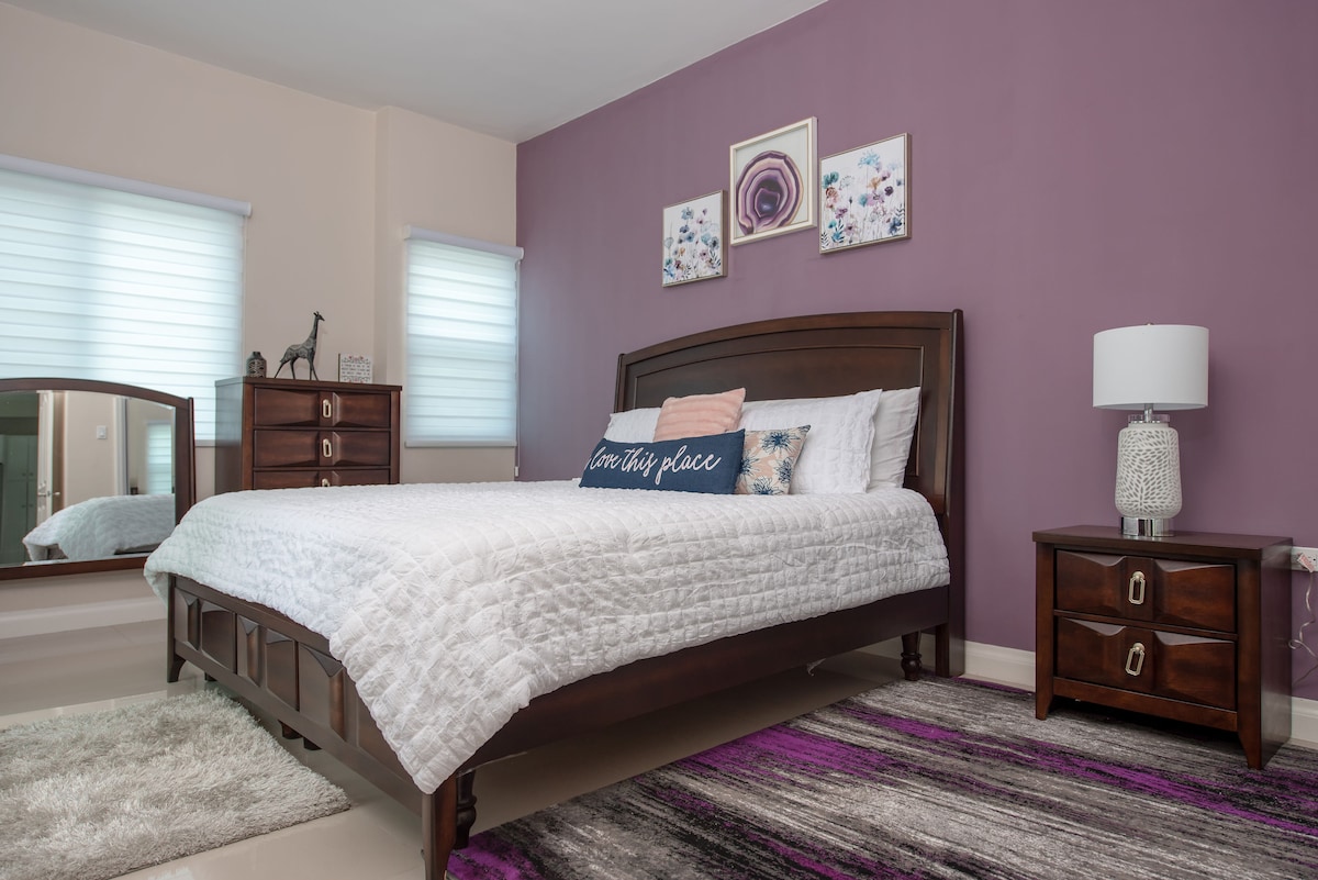 Relájate con tu familia. Este alojamiento tiene capacidad para un máximo de 6 personas y cuenta con aire acondicionado en «TODAS» las habitaciones. Esta casa también incluye lavadora y secadora, internet de alta velocidad WIFI, junto con televisores inteligentes 4K. Relájate con seguridad las 24 horas en las instalaciones de esta comunidad cerrada. ¿No quieres cocinar? Esta casa está a 8 minutos de restaurantes populares y a 20-35 minutos de Kingston y del Aeropuerto Internacional Norman Manley, dependiendo del tráfico. ¿Por qué esperar? ¡Reserva ahora!