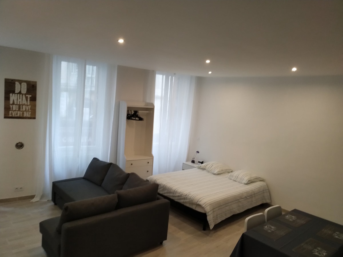 pequeño apartamento de 21 m2 que consta de una sala de estar ( con cama plegable que tiene un colchón real y no un sofá cama), una cocina y baño separados. muy luminoso en el centro de la ciudad a dos pasos del puerto viejo y el transporte público está totalmente equipado solo necesita sus cosas personales
