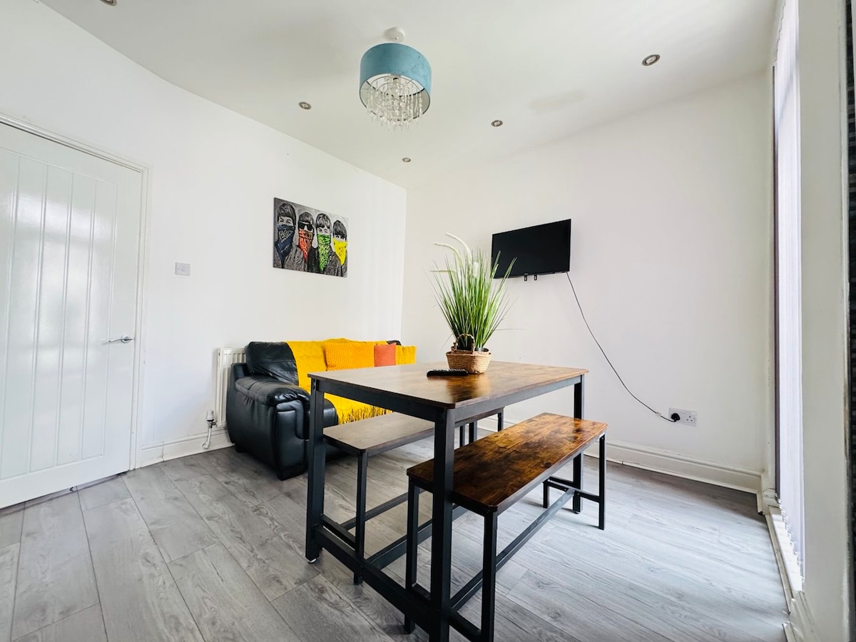 Trae a tus amigos o a toda la familia a esta gran casa con mucho espacio para divertirte. A 15 minutos del centro de la ciudad. A 5 minutos del fútbol. Una selección de opciones de comida cercanas y una tienda de conveniencia en la esquina, a poca distancia a pie. Esta casa recién renovada ofrece una sala de estar abierta, comedor en la planta baja que conduce a un patio al aire libre cerrado para aquellos que quieran relajarse y alojarse. 3 dormitorios en la planta superior, una cuna si es necesario y mucho espacio en el armario para aquellos que planean visitar la ciudad.