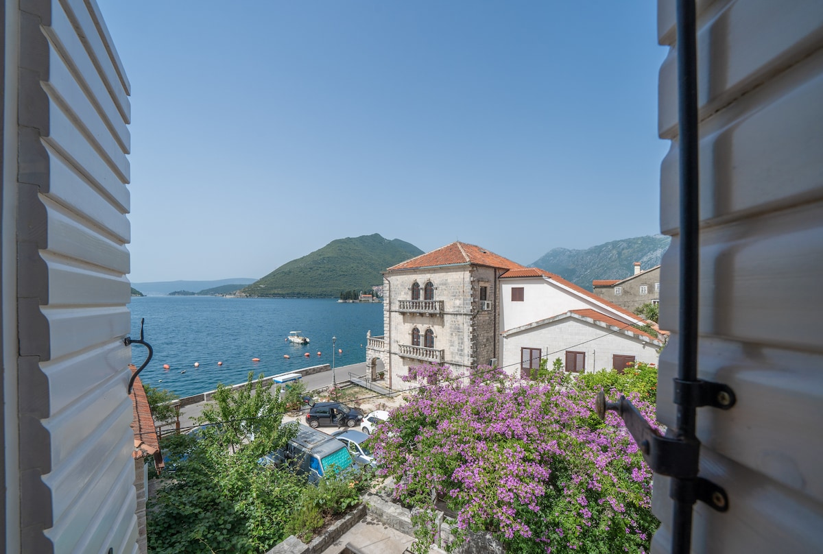 Sun-drenched seaside home with panoramic Bay views, located in a traditional, picturesque fishing village - authentic local charm, just 2 KM away from the Old Town of Kotor. Spacious and elegant - 4 bedrooms, 2 modern bathrooms, 2 private terraces, a fully equipped kitchen, fast Wi‑Fi, and work-friendly spaces. Secure garage, ideal for families, couples, and remote workers seeking tranquil luxury by the sea. Local tips, optional airport transfer, and an attentive host for a seamless stay.