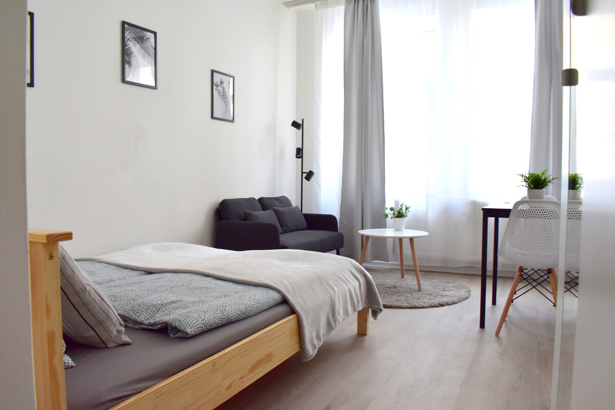 Cozy apartment in Prague 1, just minutes from Wenceslas and Republic Squares. Fully equipped kitchen, comfortable living area, and a king-size bedroom with smart TV. Modern bathroom facilities. Perfect base to explore Prague’s historic center. Located in Prague 1 – New Town, everything is within walking distance. The area is lively, full of cafes, restaurants, and shops. All public transport—metro, tram, bus, and train—is just a 2-minute walk away, making it easy to explore the city.