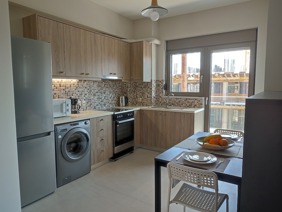 ACTUALMENTE, SE ESTÁN REALIZANDO OBRAS DE CONSTRUCCIÓN en un edificio frente al apartamento, por lo que algunos días el ruido podría aumentar. Por este motivo, en caso de que el ruido le cause un problema, le proporcionaremos un 10 % de descuento en su estancia. Nuestro luminoso y acogedor apartamento se encuentra en el centro de la moderna ciudad de La Canea, en las inmediaciones del centro comercial de la ciudad, la estación central de autobuses, el casco antiguo de La Canea con el puerto veneciano y la playa.