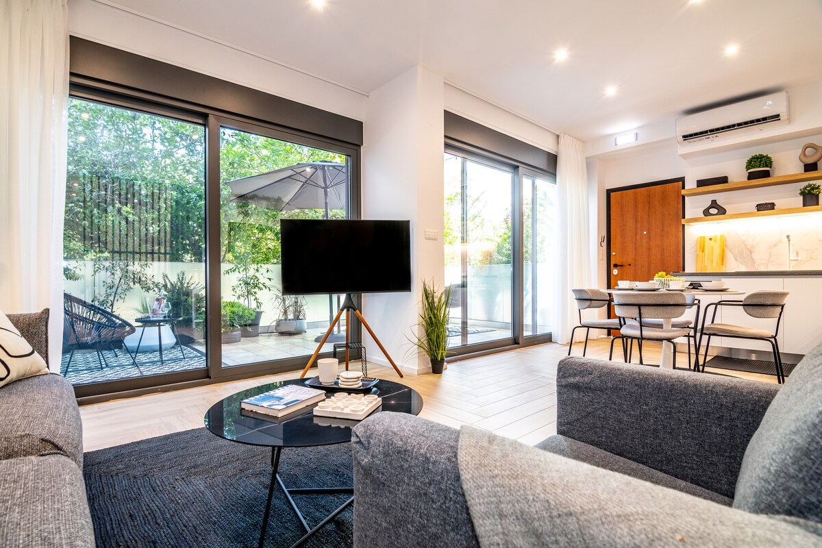 2 dormitorios con vistas al jardín, cerca del puerto veneciano antiguo y del centro