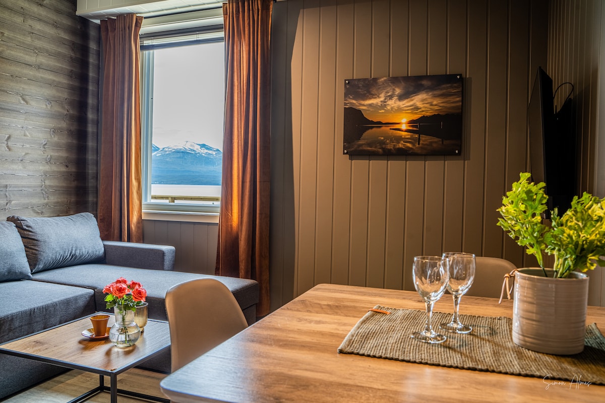Apartamento moderno recién renovado con capacidad para 4 huéspedes. Perfecto para quienes buscan experimentar las auroras boreales y otras aventuras en el Ártico, ya sea de forma independiente o con operadores locales. Olderdalen se encuentra junto a Lyngenfjord, aproximadamente a 2,5 horas en auto de Tromsø. Una tienda de comestibles local y el ferry a Lyngen están a poca distancia del apartamento.