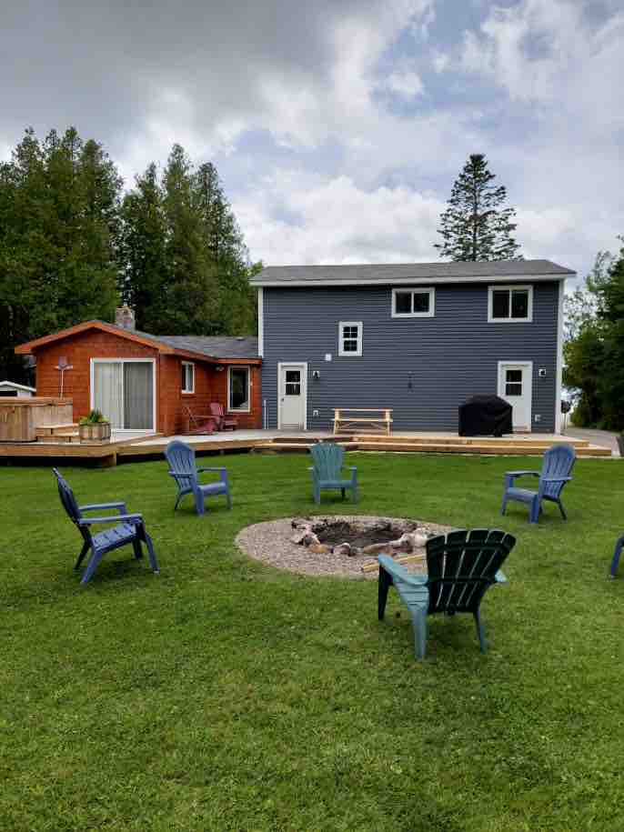 Explore this one acre, pet friendly property located on the outskirts of the quaint town of Wiarton at the gateway to the Bruce Peninsula. Whether you're here for a short getaway or work assignment, you can relax and enjoy a slower pace of life by sitting around a bonfire and gazing at the stars or hanging out with your friends enjoying a refreshment on the deck with a view of Georgian Bay.