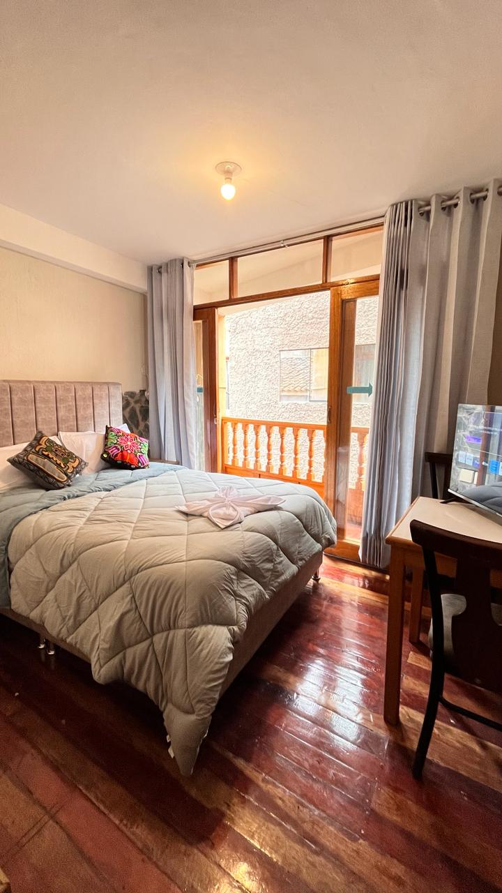Hotel tranquilo y bien ubicada en Ollantaytambo: a pocos minutos de la Plaza y muy cerca de la estación de tren, con acceso vehicular hasta la puerta. Habitación interior, silenciosa, con cama doble 1.35 m, baño privado y agua caliente 24/7. Wi‑Fi rápido, TV con cable, calefactor y hervidor; incluimos toallas, shampoo y jabón. Contamos con una hermosa terraza con vista increible y una cocina/comedor de libre uso. Desayuno incluido (box para salidas tempranas). Ideal para 1–2 huéspedes.