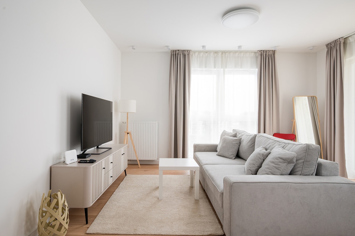 Le invitamos a un apartamento moderno y acogedor, situado en el barrio de "Włochy" de Varsovia. El apartamento está situado en un edificio moderno, rodeado de numerosas tiendas, puntos de transporte público (que permiten llegar al centro en 15-20 minutos) y puntos de servicio (gimnasio, panadería, salón de masajes, etc.). No muy lejos del apartamento también se encuentra el centro comercial «Faktory» y el parque Kombatantów. Un lugar ideal para estancias cortas y largas, que ofrece comodidad y una ubicación conveniente.
