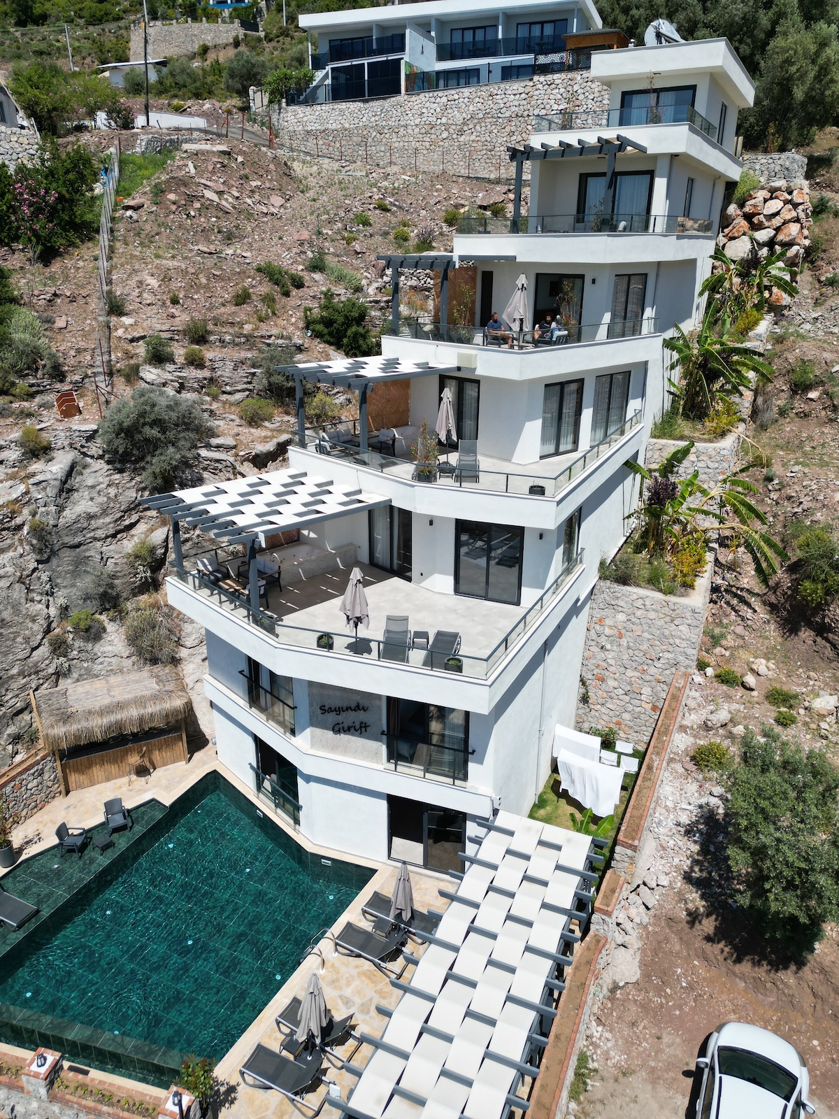 Una hermosa villa independiente, Holly es una de las seis grandes áreas de 325 metros cuadrados de superficie habitable diseñadas para unas vacaciones familiares. Villa Holly se encuentra a los pies de la hermosa montaña Babadağ, a 800 metros de la carretera principal, donde tienes un servicio de autobús que te lleva a la laguna azul de Oludeniz. El pueblo de Kaya Koy para visitar las 3000 casas fantasma y ejemplos de la vida típica turca de antaño. Otra visita obligada es la ciudad portuaria de Fethiye, con sus sofisticados restaurantes y vida nocturna.