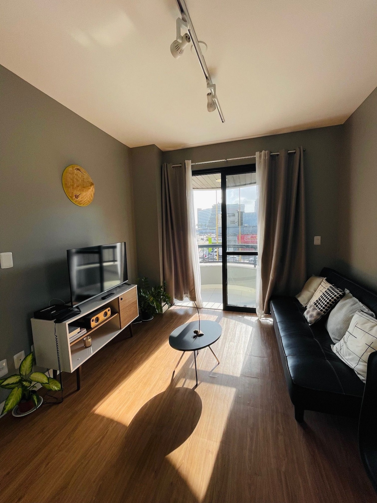 Departamento en un edificio completamente nuevo con: Aire acondicionado en la habitación Wifi de alto rendimiento Televisión inteligente Cocina equipada Ideal para un máximo de 3 personas Ropa de cama y toallas se proporcionan baños El condominio tiene: Terraza con piscina Casa de la puerta abierta las 24 horas academia Estacionamiento: 1 plaza de estacionamiento. Estamos cerca de restaurantes, farmacias, bares, sala de conciertos, varios mercados y servicios.