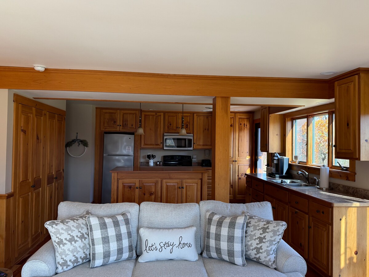 Disfruta de magníficas vistas panorámicas del lago y las laderas circundantes desde el amplio balcón privado. PERMISO #2023-0075 Inmaculado y moderno - Apartamento de 1 dormitorio y 1 baño, cocina totalmente equipada, acogedora sala de estar, TV de 70 pulgadas con Netflix y canales de música/TV por Internet, utiliza tus servicios de streaming, etc. Sillón reclinable de cuero, fascinante chimenea LED, cama tamaño king muy cómoda, lavadora, secadora, elegante baño de hidromasaje y un balcón amueblado con parrilla eléctrica y una vista de Finger Lakes que te robará el corazón.