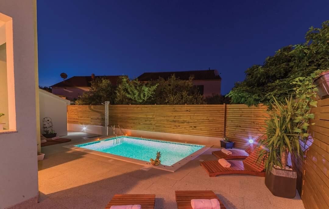 Villa Aurana con vistas al lago Vrana y al mar Adriático. La villa de nueva construcción se encuentra en una ubicación tranquila, a solo 5 km de las primeras playas,y cerca se encuentran las ciudades de Zadar, Sibenik y Biograd. Las habitaciones y la sala de estar están climatizadas. En primer lugar, por supuesto,la piscina es de dimensiones generosas y se puede calentar si se desea. La cocina de verano y la parrilla para preparar comidas deliciosas, los huéspedes más pequeños seguramente se divertirán en el parque infantil o en la Playstation. Hay 4 espacios de estacionamiento entre los que elegir.