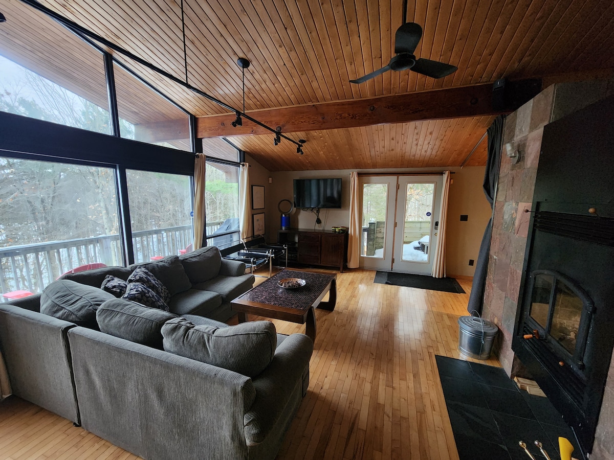 (Ten en cuenta que después del 1 de julio de 2022, el HST está incluido en el precio del anuncio) Situada a 30 km al norte de Kingston, la casa de campo «Rock, Pine and Sunlight» ofrece un refugio tranquilo para viajeros y gente de la ciudad que buscan refrescarse y experimentar la vida al aire libre. Las actividades incluyen piragüismo/kayak, pesca y senderismo, esquí de fondo y raquetas de nieve. Ten en cuenta que el «dormitorio 3» es semiprivado. Está rodeado por una pantalla plegable, no una puerta. La cama es un futón doble. La habitación es más adecuada para niños.
