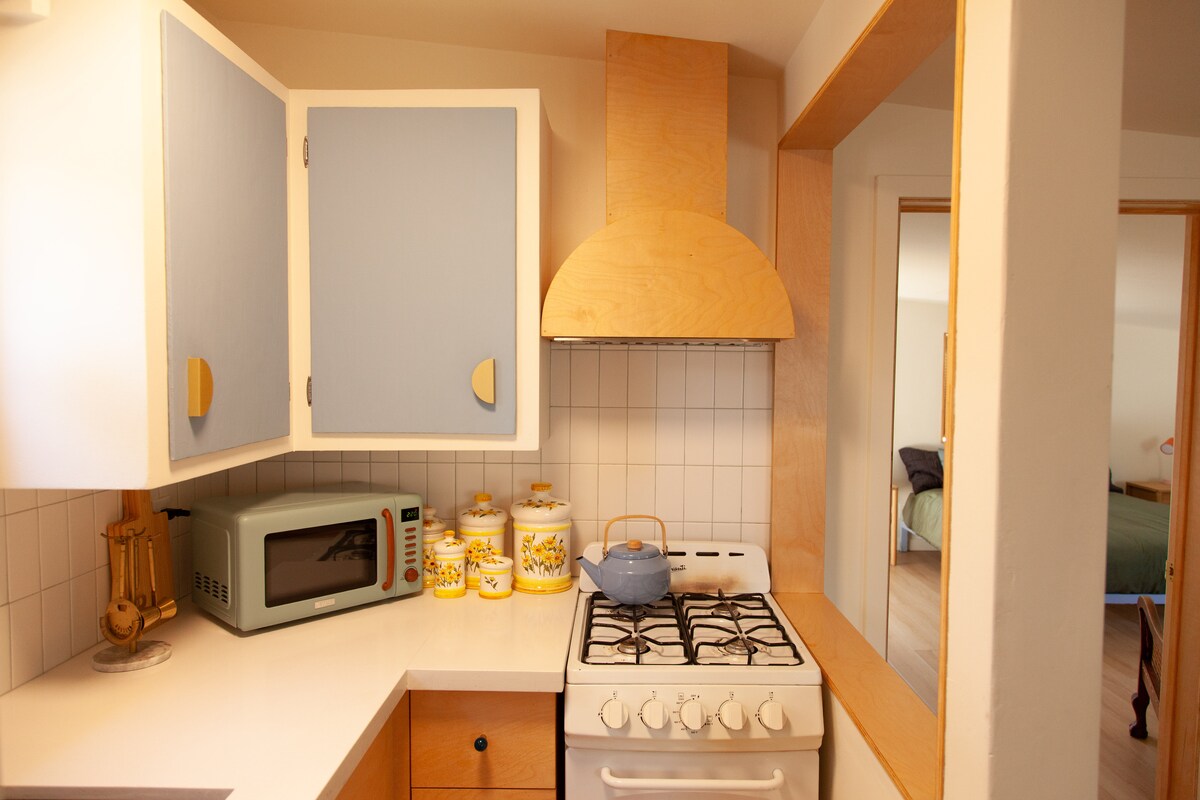El departamento privado incluye: - Dos habitaciones espaciosas. - Un baño completo - Una cocina encantadora y totalmente equipada. - Una sala grande con una cama extraíble tamaño queen para huéspedes adicionales. - Café (prensa francesa y goteo), té y accesorios. - Un patio privado. Disfruta de un desayuno de cortesía entregado en tu puerta cada mañana, con productos recién horneados, fruta de temporada y zumo prensado en frío. Para un servicio adicional, haz un pedido de pago con 72 horas de antelación, sujeto a la disponibilidad de Ollie. Enlace compartido a petición.