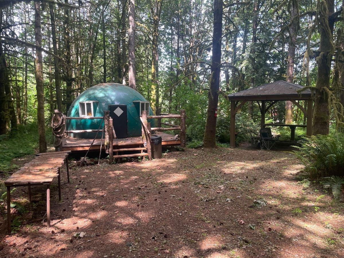 Escondida entre los árboles al final de un largo camino privado, nuestra casa domo geodésico ofrece una aventura única. Ubicado en poco más de un acre, ofrece la escapada definitiva para aquellos que buscan una experiencia vacacional única. Completamente renovado, combina a la perfección el diseño industrial moderno con el entorno natural, creando un refugio tranquilo que atesorarás para siempre. Disfruta de la cocina y el comedor al aire libre, reúnete junto al fogón, sumérgete en el entorno tranquilo para un retiro costero inolvidable