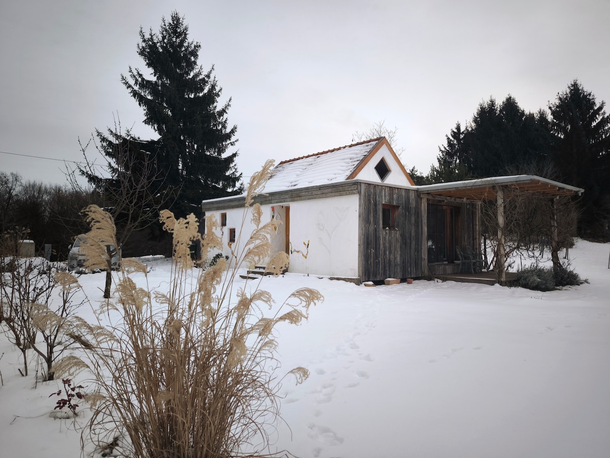 Disfruta de una tranquila escapada a la naturaleza en una casa ecológica hecha a mano construida con fardos de paja, arcilla y madera. Este alojamiento único combina la sostenibilidad con la comodidad, ofreciendo un refugio tranquilo para parejas, viajeros solitarios o familias pequeñas, ¡y sí, las mascotas también son bienvenidas! 🐾 Rodeado por un prado de 30 acres que bordea un bosque, ofrece tranquilidad lejos del bullicio de la ciudad mientras sigue conectado con los servicios esenciales. Ubicado en pura naturaleza, perfecto para descansar o explorar el parque Goričko.