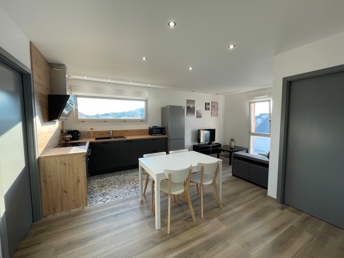 🌿 Relájese en este alojamiento tranquilo y elegante. 60 m2 de confort en una decoración bohemia chic en la planta baja con terraza y aparcamiento privados. 🌼 🌳En un entorno verde y acogedor, lejos del ajetreo y el bullicio del centro de la ciudad, pero lo suficientemente cerca (15 mm), podrá disfrutar de las ventajas de nuestra hermosa ciudad de Nancy. 🏰 Este luminoso alojamiento de una sola planta, totalmente equipado, tiene vistas directas al jardín arbolado ⚘️ y a la terraza amueblada. ¡☀️ Deje su equipaje y disfrute! ¡Carpe Diem! 😊