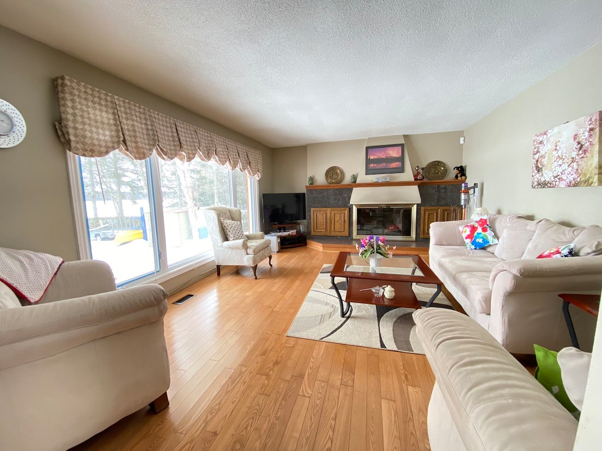 Una casa tranquila, bonita y acogedora de 4 dormitorios para familias y amigos que se reúnen. A poca distancia a pie del lago, tiendas de comestibles, LCBO, farmacia, pub y restaurante. Cerca de numerosos centros vacacionales y parques para divertirse en verano e invierno. La amplia cocina y la terraza del patio trasero están totalmente equipadas para todas tus necesidades. Los huéspedes podrán disfrutar de todos los entretenimientos tanto dentro como fuera durante todo el año. La tarifa diaria es para 8 huéspedes o menos. No se permite fumar ni celebrar fiestas.