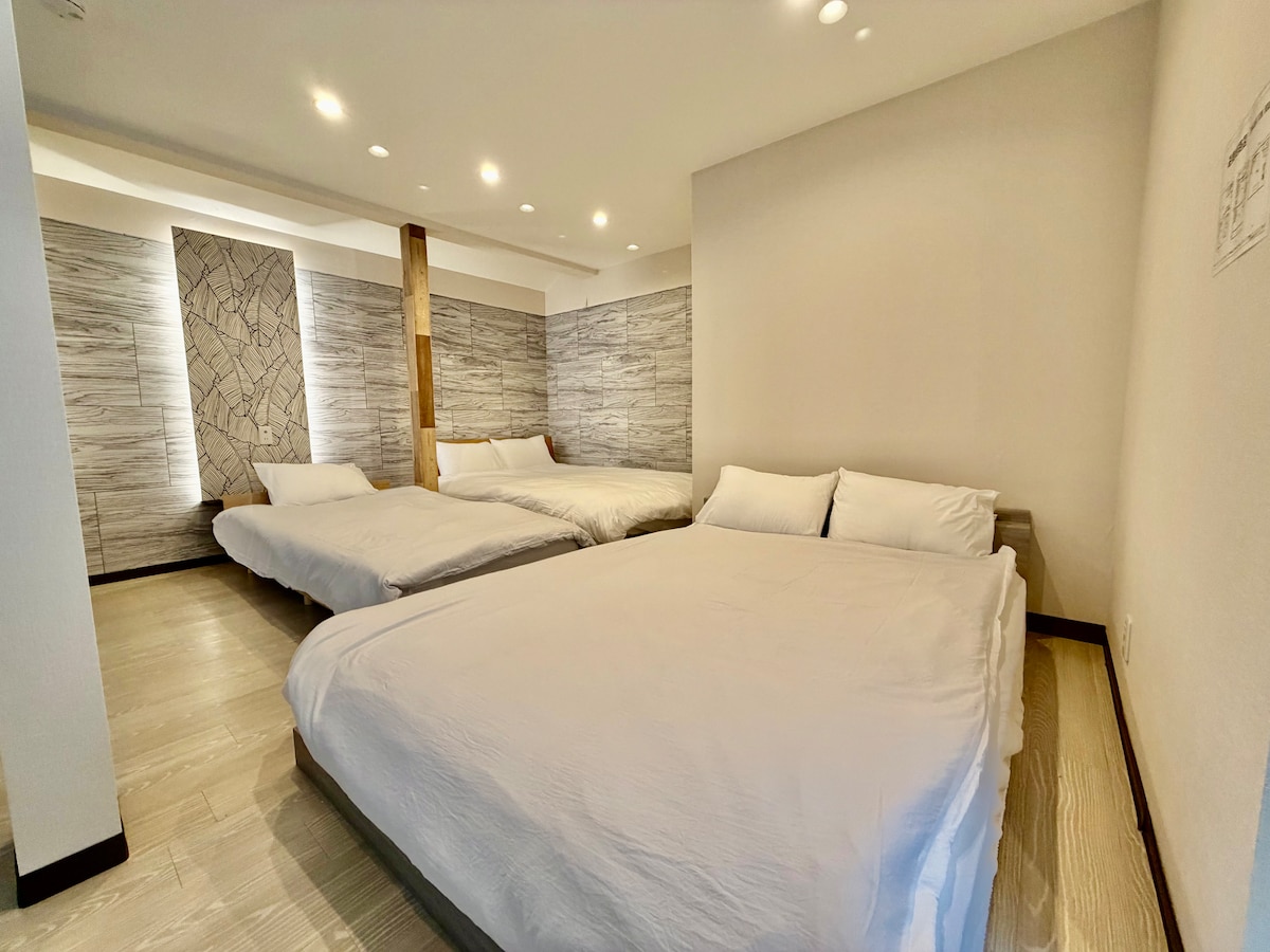 ■寝室 寝室は1つです。 ※部屋にはダブルベッドが2台、シングルベッドが1台、ソファベッド1台を設置しています。 ■キッチン 基本的な調理器具や食器、電子レンジ、オーブントースター、コンロ、電気ポット、炊飯器、冷蔵庫まで一式を揃えています。 ■室内の備品はすべて自由に利用可能 日常生活に必要なものは、ほぼ全てご用意しております。 ※備品の持ち帰りは厳禁です。 ■浴室シャワー、トイレは全て別です。 浴室にはボディーソープ、シャンプー、リンス、ドライヤーなどのアメニティーをご用意しています。 洗濯機と洗剤もご使用可能ですので、コインランドリーに行く必要はありません。 ■無料Wi-Fi 宿泊中は無線Wi-Fiの利用は無料です。 ※備え付けのWi-Fiなので、持ち出しはできません。 🔳Blu-rayプレーヤー お気に入りの映画鑑賞を。 ■フロント フロントはありません。セルフチェックインの施設です。 ※ご不明点などがあればホストに連絡してください。