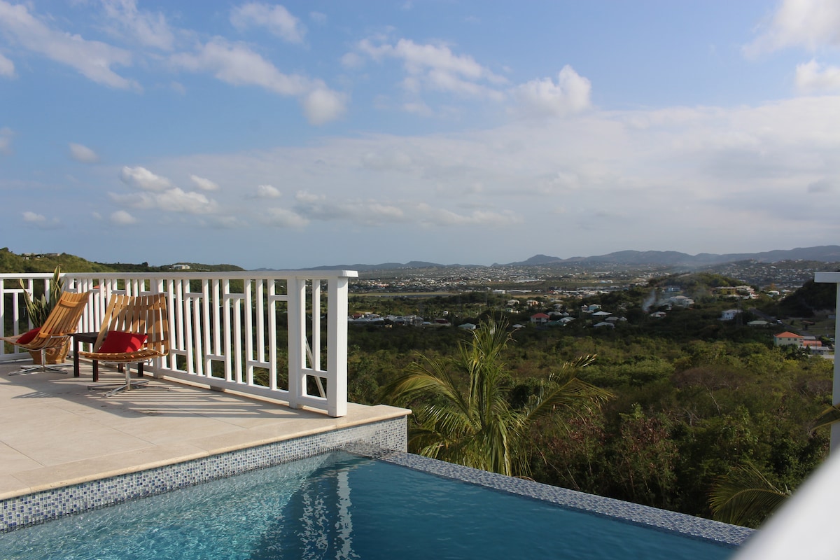 Estamos encaramados en lo alto de una colina con una vista preciosa del mar Caribe y la capital, St. Johns. El apartamento está a 10 minutos del aeropuerto, del centro de St. Johns y la playa, por lo que está muy bien ubicado. El apartamento tiene su propia entrada para que tengas privacidad. ¡Una botella de nuestro ponche de ron casero te espera a tu llegada! El desayuno está disponible para pedir. ¡Solo tienes que preguntar! Todo tipo de personas son bienvenidas. :-)