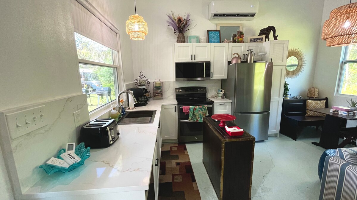 *Barrio tranquilo y seguro Ubicación privilegiada *20 minutos al aeropuerto de Orlando *20 minutos a los parques de Disney y Disney Springs *25 minutos a Universal Studios y CityWalk *7 minutos a la plaza comercial con los mejores outlets y diversos restaurantes *5 minutos a un super Walmart *Minimercados locales. Dentro de tu minicasa: *Cama tamaño queen. *Café, nevera y microondas *Entrada privada + patio *Ducha moderna *Aire acondicionado, wifi y Smart TV *¿Necesitas transporte o arreglos especiales? Háznoslo saber
