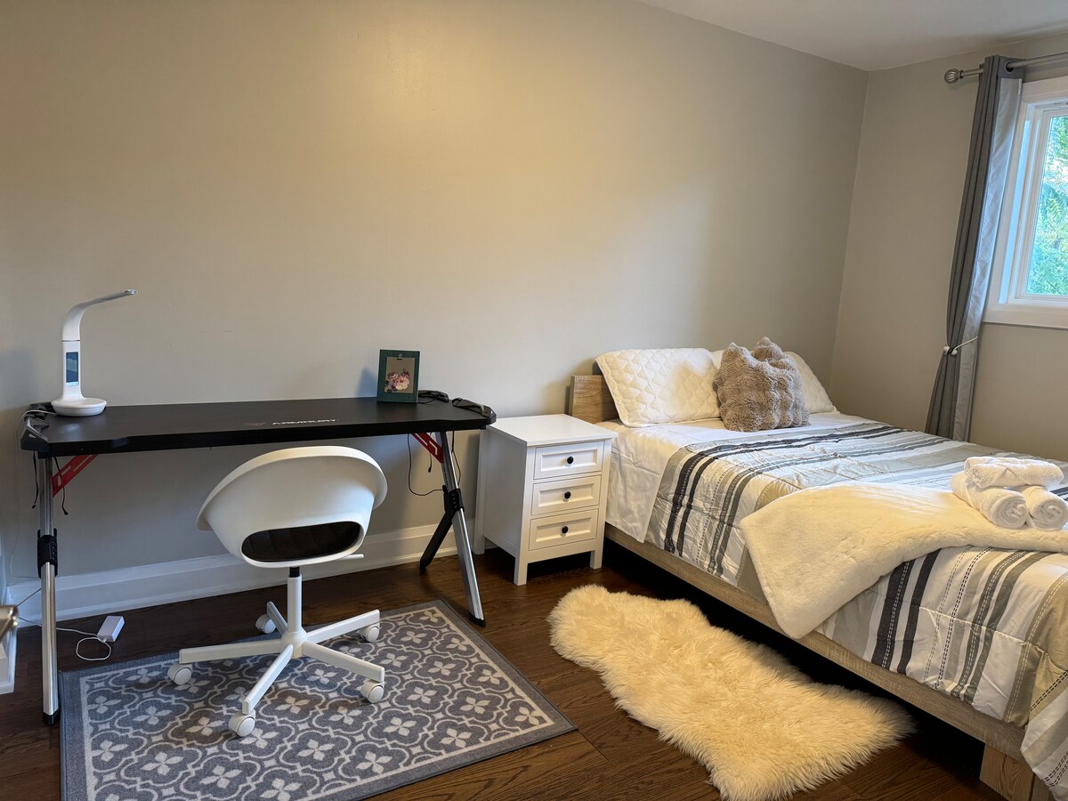 ¡Habitación luminosa con cama tamaño queen en Pickering!