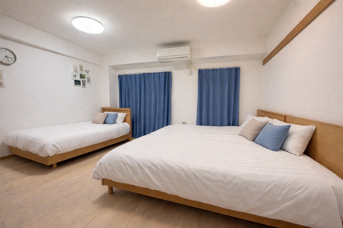 Entra en este nuevo apartamento del primer piso en Sumida, Tokio, cerca del Skytree, donde el espacio en el color de la madera y la iluminación suave se entrelazan para traer una experiencia de vida relajante y cálida. Distribución de inicio • Amplio salón Cómodo sofá y TV, lo que hace que los momentos de ocio del viaje sean relajantes y agradables. • Cocina abierta Equipado con utensilios de cocina básicos, cubiertos, hervidor eléctrico, nevera, microondas, etc., adecuado para cocinar ocasionalmente una comida caliente casera. • Dos dormitorios privados Cada habitación está equipada con una gran cama doble de 1,6 m × 2,0 m, suave y cómoda, con un diseño fresco y moderno, que hace que las personas se sientan relajadas tan pronto como entran por la puerta. • Equipamiento del baño • Diseño de separación húmedo y seco, mantén el espacio ordenado y fresco. • Bañera y ducha separada para relajarse durante su viaje. • Diseño de lavabo doble para un aseo más eficiente por la mañana y por la noche. • Equipado con artículos de aseo básicos como cepillos de dientes desechables, secadores de pelo, etc. • La lavadora tiene función de secado, por lo que puedes ocuparte fácilmente de la colada durante viajes de negocios o estancias largas. Ubicación acogedora y conveniente • Tiendas de conveniencia, supermercados, cafeterías y auténticos restaurantes japoneses a poca distancia a pie. • El Tokyo Skytree y el centro comercial Skytree City están a unos 3 minutos a pie • Fácil acceso a zonas populares como Asakusa, Ueno, Akihabara, etc. Características de la casa • Recién renovado, acogedor y luminoso. • Diseño de dormitorio doble, adecuado para familias, parejas o amigos • Unidad en el primer piso, sin necesidad de subir escaleras, fácil acceso. • Consigna de equipaje gratuita