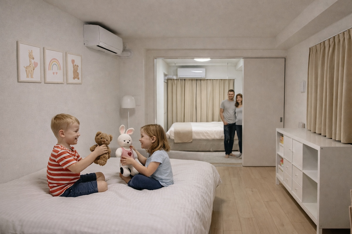 本館位於日本最高建築、東京最具代表性的觀光地標「東京晴空塔/押上站」步行僅 1 分鐘的絕佳位置,是一間昭和復古風格且自助入住的公寓式HOTEL. 🏡 55㎡ 三床家庭房|2楼|有阳台|无电梯 ・沙發床 1 張(160cm × 200cm) ・單人床 2 張(120cm × 200cm) ・餐桌 1 張·餐椅 4 張 (一房一廳家庭套房:臥室配有兩張單人床,客廳設有一張雙人可折疊沙發床) ◆ 家電齊全: 免費Wi-Fi、大冰箱、電磁爐、電鍋、微波爐、電熱水壺、洗衣機、吹風機、智慧型免治馬桶、冷暖空調、浴室衣物乾燥機、延長線、戴森吸塵器、熱水器、加濕器等,一應俱全,滿足長短期住宿需求. ◆ 生活備品: 洗髮精、潤髮乳、沐浴乳、洗手乳、洗碗精、洗衣精、毛巾、浴巾、室內拖鞋、牙刷牙膏、衛生紙、抽取式面紙、礦泉水、水杯等… ◆ 獨立空間: 臥室、客廳、衣櫃、玄關、鞋櫃、廚房、衛生間、附浴缸和暖氣的淋浴空間、洗手台、餐廳及專屬陽台⋯ 提供簡易餐具與廚具… ◆ 乾淨安心: 由日本專業清潔團隊進行全面清掃,並依照星級飯店標準配置與更換床上用品,確保每位旅客皆能享有乾淨舒適的住宿.
