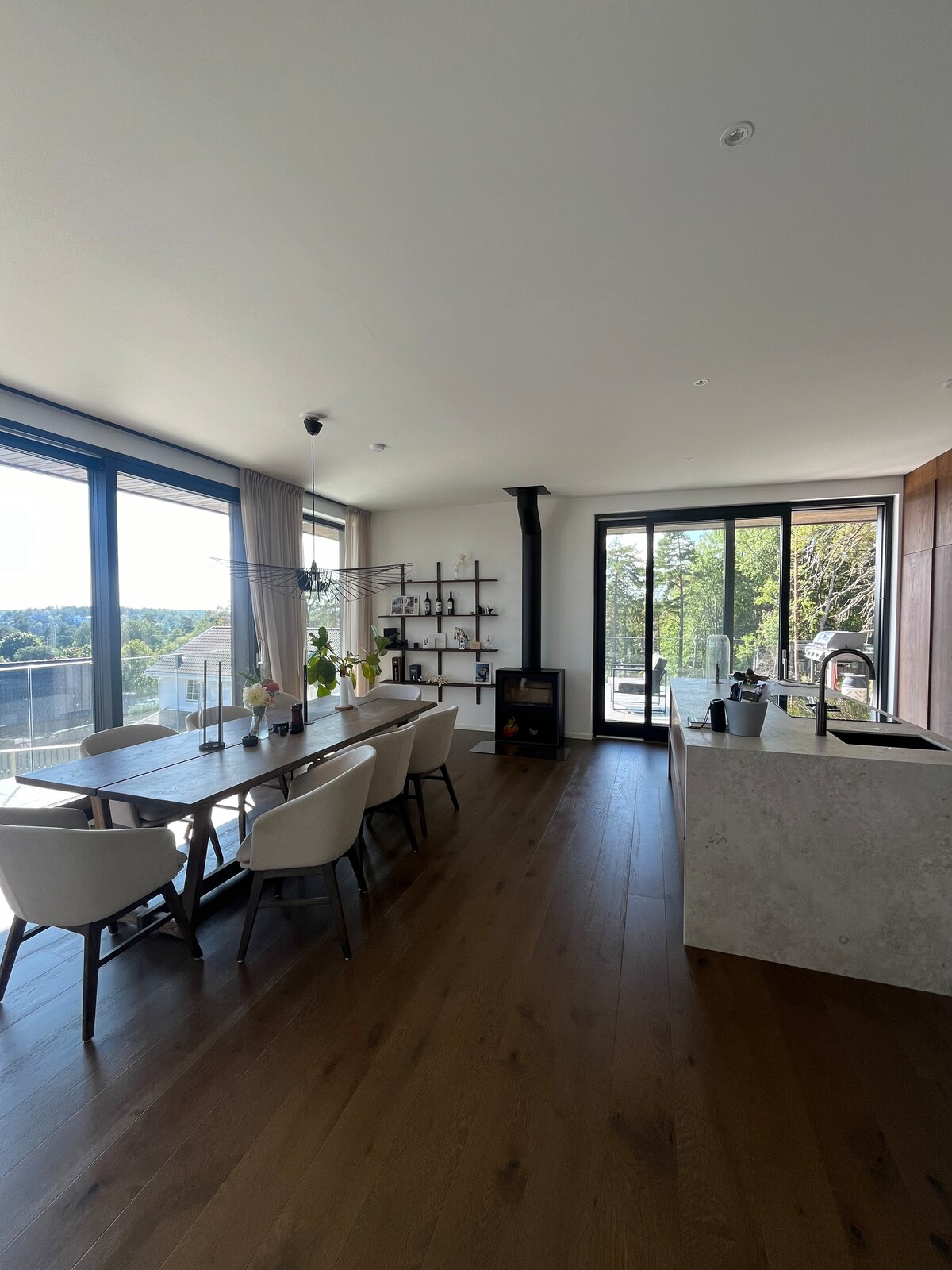 35 minutes from Stockholm. 45 minutes to Arlanda Airport. Very close to all transport, ferry, bus, bike hire. Free private parking. Wifi. Beautiful, spacious, peaceful. Central penthouse rooms on one floor of a classic 1860s wooden merchant villa in Vaxholm center. 3 bedrooms, fully-equipped kitchen, large living room. Sea views of the archipelago. Large patio with morning and evening sun. Nature, guest marina, restaurants, shopping, bathing beaches, ice cream! Everything you need is here 🌿