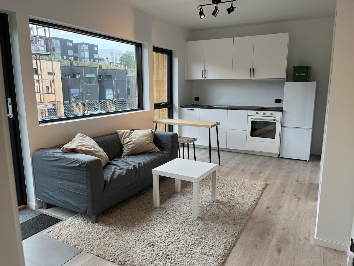 Este apartamento en Kanalbyen está situado junto al mar en Odderøya, en el centro de Kristiansand y cerca de Kilden, Kunstsiloen, Fiskebrygga y Kulturtorget. Markensgate está a 5 minutos a pie de Kanalbyen. El apartamento contiene: pasillo, salón/cocina, 1 dormitorio y 1 baño con lavadora. Desde el salón/cocina hay una salida al balcón con vistas al bosque y las montañas. Es posible alquilar un coche que esté en el aparcamiento subterráneo.