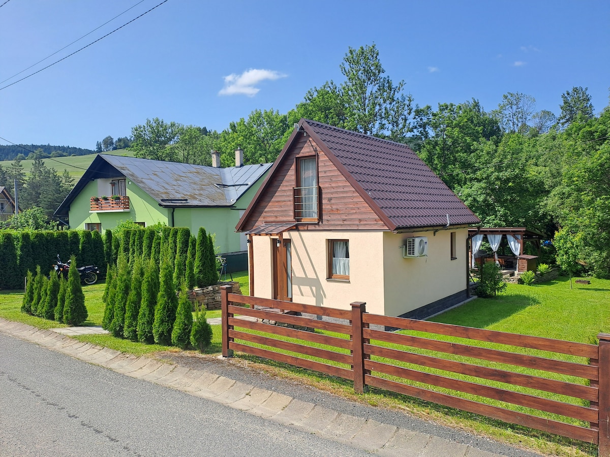 Domek jest położony na górskiej polanie, w pełni wyposażony, Chata ma wielkość 35 m2 kwadratowych jest w niej wszystko co potrzeba do normalnego funkcjonowania. Toaleta, prysznic, kuchnia połączona z pokojem dziennym i sypialnią, z pokoju dziennego można wyjść na balkon z którego widać całą polan i Tatry bielskie. Na dachu budynku jest duży taras gdzie w ładne dni można uprawiać jogę lub odpoczywać. Możliwość skorzystania z sauny i bali za dodatkową opłatą Bali 150 zl-2,5h Sauna 150 zl-2,5h