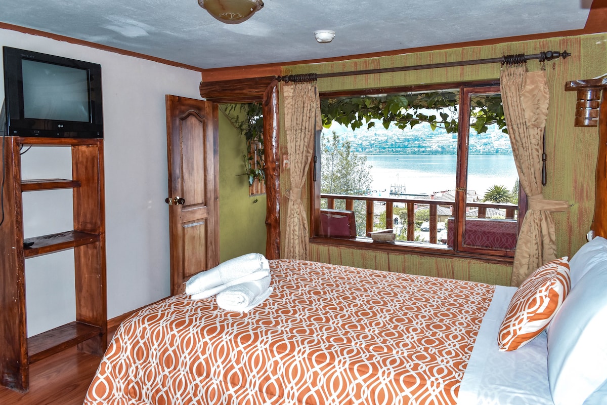 Explora Otavalo desde nuestra acogedora habitación familiar con capacidad para 4. Disfruta vistas al jardín, baño privado, TV y armario. Acceso libre a cocina, sala y más. Ofrecemos lavandería y estacionamiento gratis. Nuestro hostal es el punto de partida perfecto para descubrir la rica cultura y naturaleza de la zona. Ideal para familias buscando confort y una experiencia inolvidable.