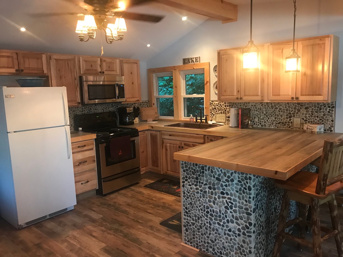 Casa durante todo el año ubicada en un entorno rural único junto al lago con un baño recientemente renovado. Más de 2 acres de espacios verdes exteriores que ofrecen una experiencia similar a un parque para disfrutar de muchas actividades recreativas * ten en cuenta que este espacio se comparte con la familia y otra casa de huéspedes. Hay mucha zona para que todos disfruten, incluida la fachada del lago de 900 pies con un arroyo corriendo por la propiedad. Disfruta de una fogata junto al lago en una chimenea privada. Amber Inn está a pocos pasos.