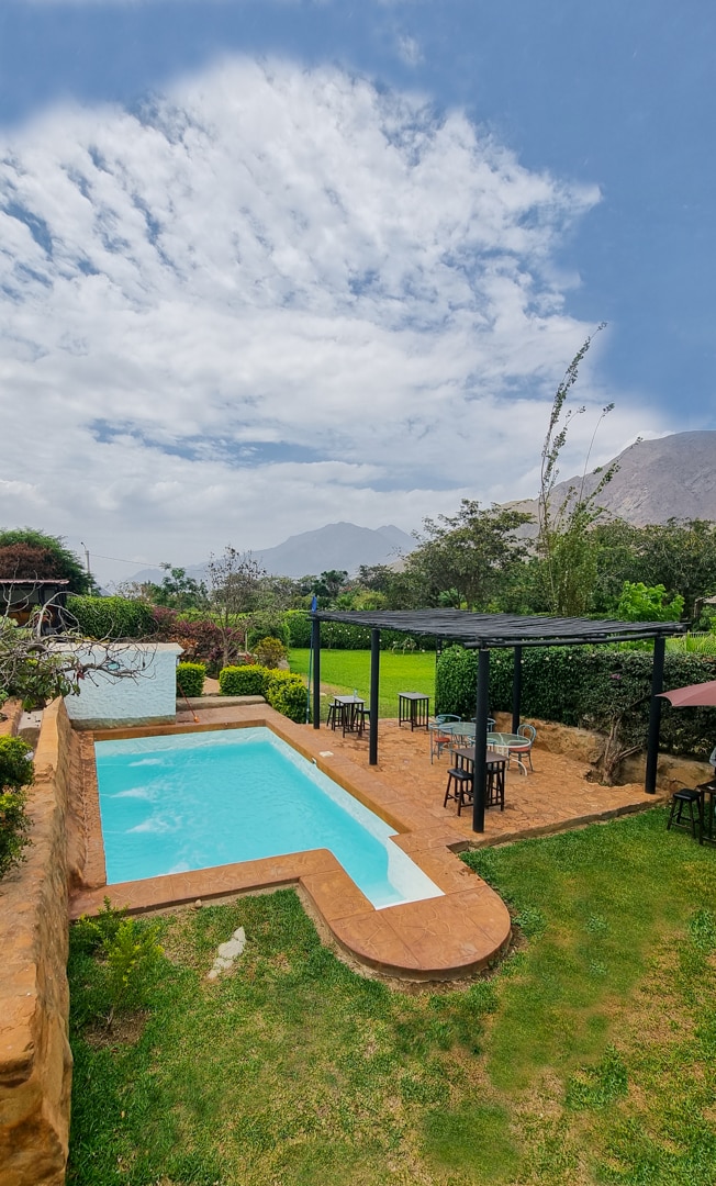 Relájate con toda la familia en nuestra acogedora casa de estilo rústico, rodeado de naturaleza, bajo el frescor de los árboles y disfruta de nuestra amplia piscina ideal para toda la familia a tan solo 20 minutos de la ciudad de Trujillo.