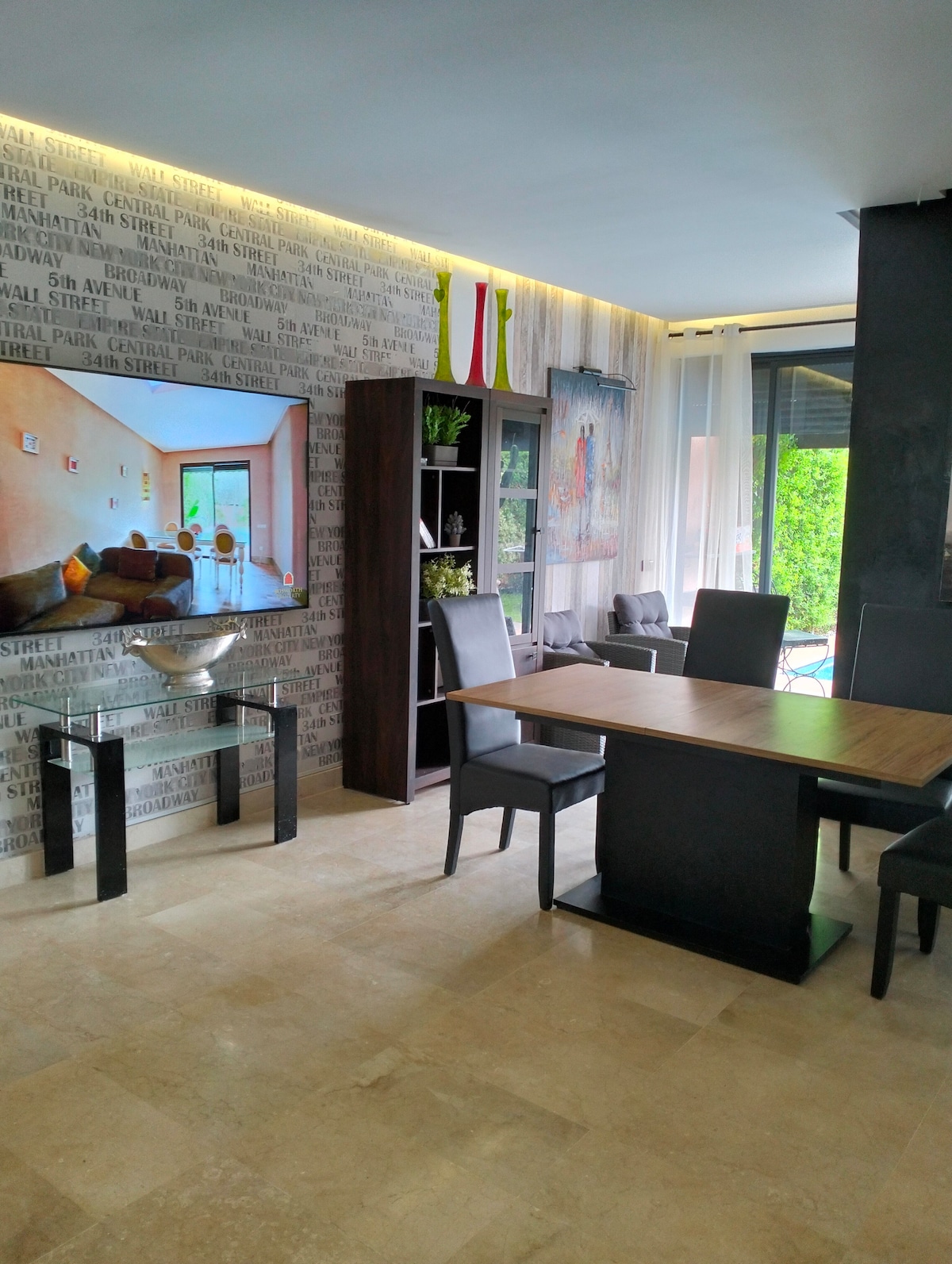 🌴 Découvrez La Perle Rouge, une villa contemporaine d’exception à Marrakech, avec piscine à débordement, jardin paysager de 1000 m² et intimité totale sans vis-à-vis, à seulement 25 minutes du centre. Billard, PS5, cuisine entièrement équipée et 3 chambres King Size dont une suite avec accès direct à la piscine. Concierge et ménage quotidien inclus.