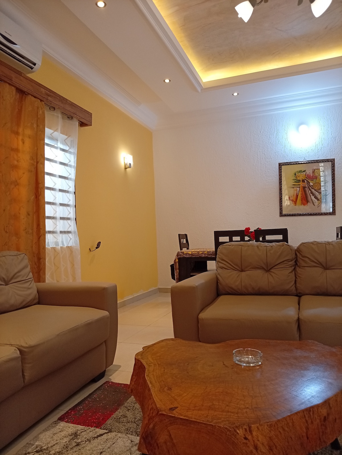 Welcome to this modern and spacious studio apartment in Cotonou— your perfect home away from home in a quiet, safe neighborhood. Enjoy a fully equipped kitchen, a cozy living area with comfy sofas and a smart TV, a dining table, and a private bedroom and bathroom. The space is bright, clean, and thoughtfully designed for relaxation or work. This beautiful appartment is pnly a short drive from the airport, it's close to upscale restaurants in Haie vive and also near supermarkets and shops