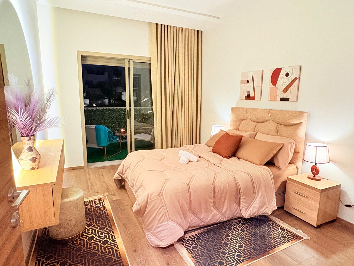 Welcome to this beautiful apartment located in Casablanca’s New Medina, near Habous. Enjoy a refined, thoughtfully designed space with a bright balcony, elegant décor, and modern amenities—ideal for a comfortable stay. A fully equipped kitchen and secure parking ensure convenience and peace of mind. A calm and contemporary retreat where every detail has been carefully considered to make your stay unforgettable.