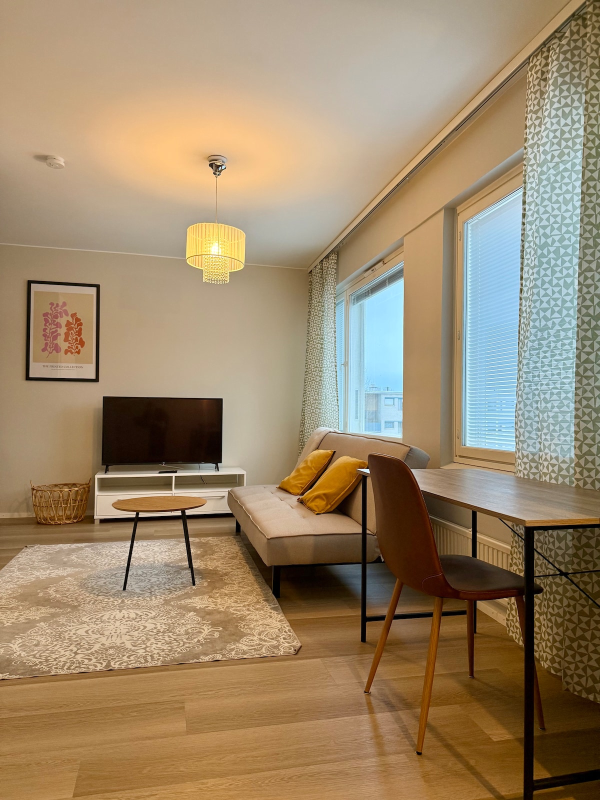 ¡Bienvenido a un acogedor y tranquilo estudio en el centro de Oulu! El apartamento está situado justo al lado del parque Ainola, a poca distancia de servicios, restaurantes y lugares de interés cultural. El estudio es perfecto tanto para viajeros de negocios como para turistas urbanos. El apartamento tiene un pequeño espacio de trabajo, así como capacidad para dos personas. Disfruta del parque cercano y de la orilla del río, o dirígete en un instante al bullicio de la ciudad: la plaza del mercado y la estación de tren de Oulu están a solo unos minutos a pie.