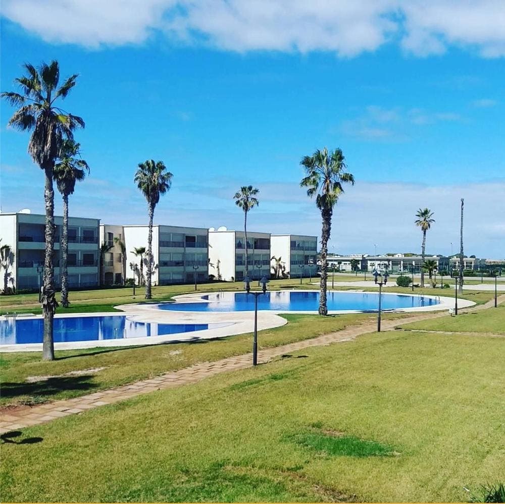 Alojamiento tranquilo y elegante, clima seco, bien situado cerca del bosque, a 10 minutos del aeropuerto, a 15 minutos del centro comercial Meryade Bouskoura y a 30 minutos del centro de la ciudad de Casablanca, vista a la planta baja del jardín y la piscina. Acceso gratuito a la cancha de minifútbol y baloncesto. Zona de juegos para niños. Cerca de un restaurante cafetería. Prohibición de animales. Res glorioso lote 2, edificio A2, apart 148, junto a BIM frente al bosque de Nouaceur. No se aceptan parejas marroquíes no casadas