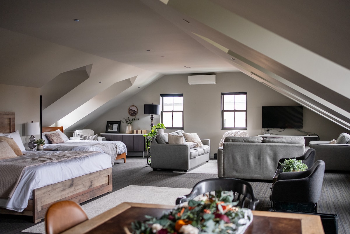 Ubicado en Wakefield, Quebec, The Grand, un hermoso edificio de piedra en 6 acres, ofrece una experiencia única. El piso principal cuenta con mesas de cosecha en un entorno de piedra distintivo. Elige entre cinco suites con diversos diseños para una estancia personalizada. Relájate con los botines y las instalaciones de fitness en el lugar, agregando aventura y bienestar a tu refugio. Número de registro: 542894