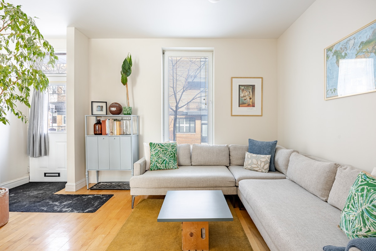 Elegante apartamento de 1 dormitorio totalmente renovado en el corazón de la plaza comercial St Hubert, tiene todo lo que necesitas. A 5 minutos a pie del metro Beaubien y a 15 minutos del centro de la ciudad. El interior es tranquilo y luminoso, con muebles nuevos y totalmente equipado. - Televisor inteligente de alta definición de 55 pulgadas. - Wifi gratuito. - Aire acondicionado - Una cama tamaño queen y un sofá grande y cómodo (6 pies de largo). - Cocina completa. - Zona para trabajar. - Lavadora y secadora.