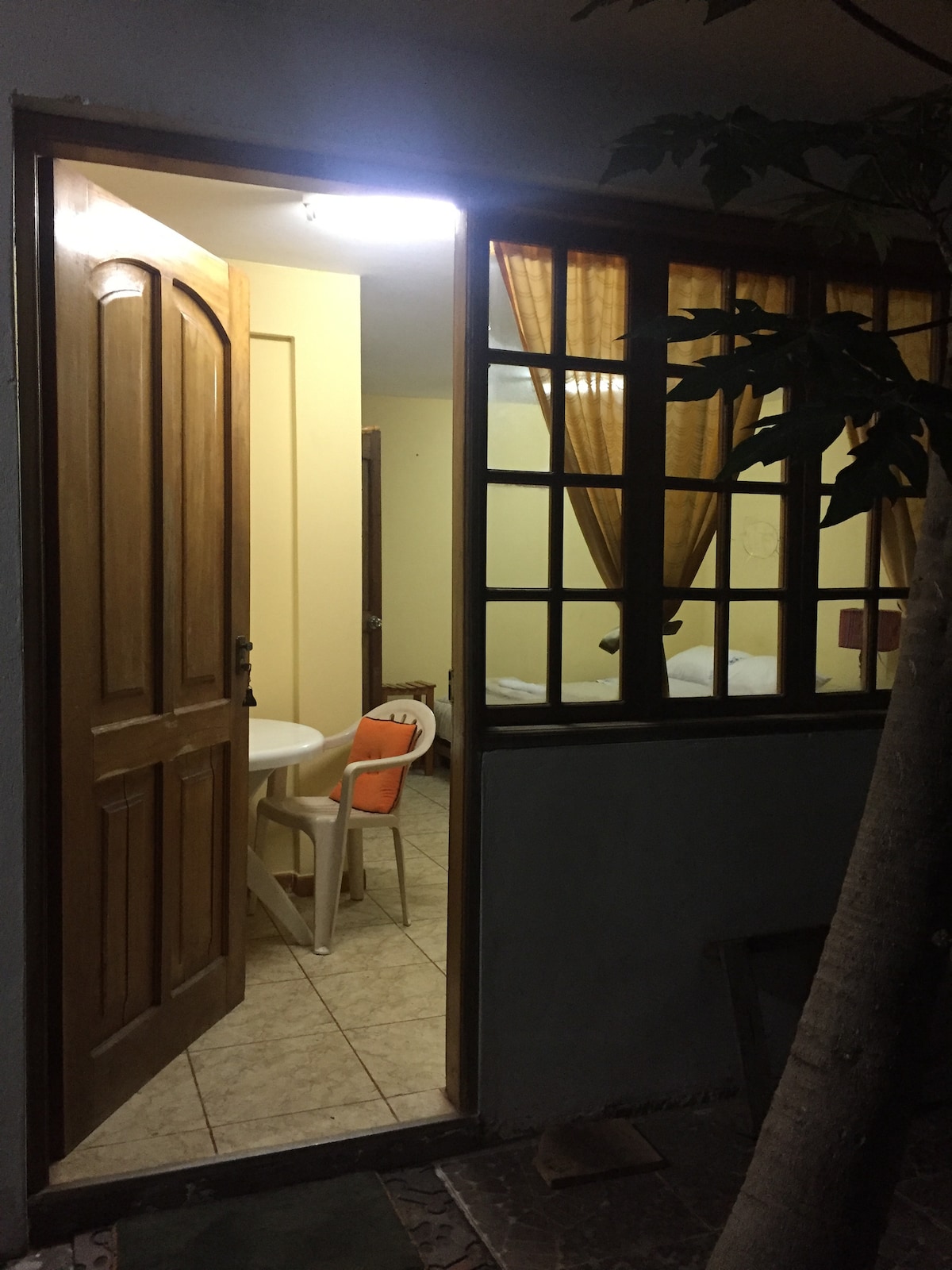 Disfruta de una experiencia con estilo en este alojamiento céntrico y a la vez en el bosque conectando con la paz de la naturaleza y a minutos de la plaza central. Vas ahorrar tiempo y combustible. • Baño con agua caliente • 2 habitaciones con 3 camas • 2 camas de 2 plazas y 1 cama de plaza y media • Terraza con vista al bosque • wifi • Sala comedor • cocina equipada • 1 televisor también vas apreciar la variar de aves, ardillas y monitos que nos visitan de la naturaleza.