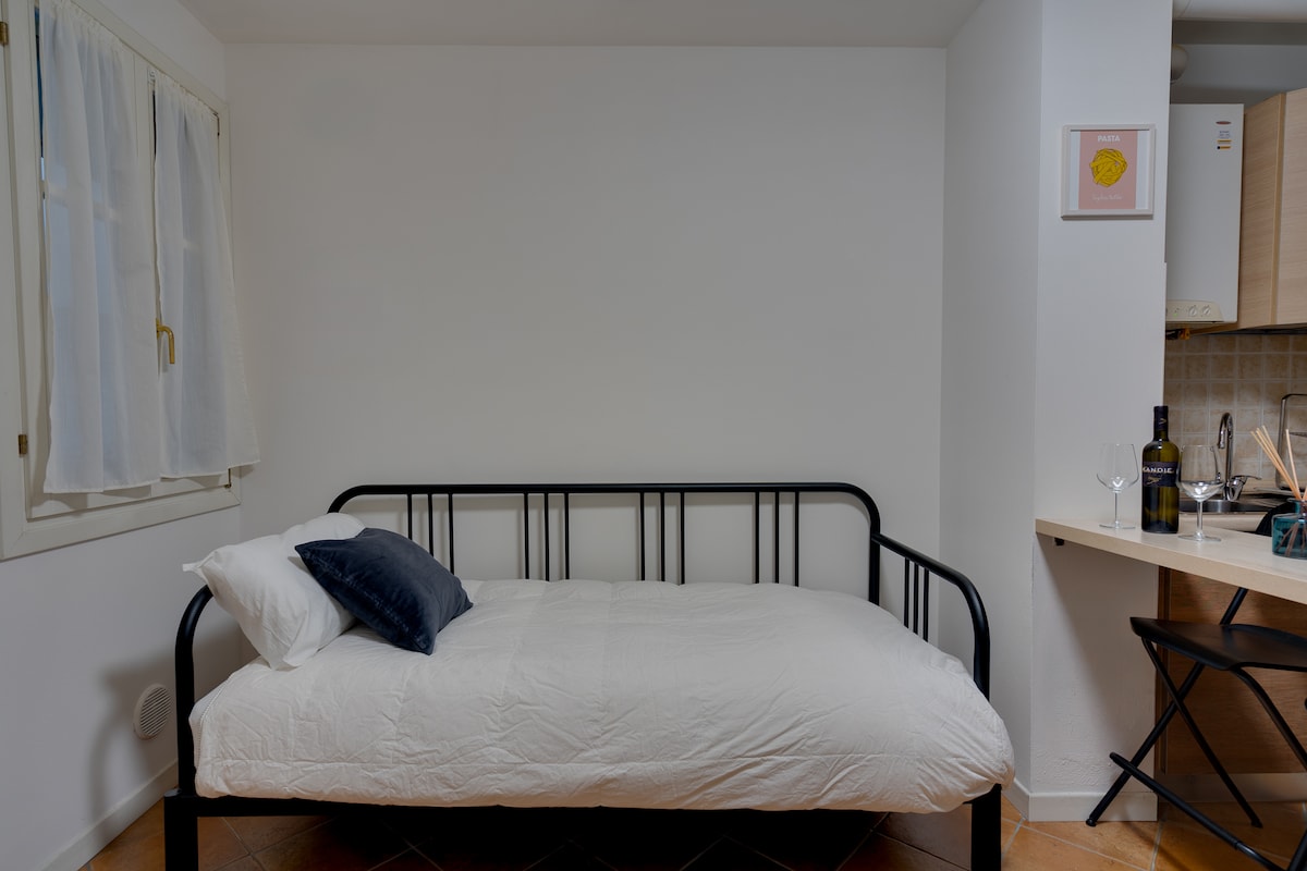 ¡Bienvenido a nuestro apartamento estudio ubicado en el corazón de Gorizia! Perfecto para parejas, viajeros de negocios o aventureros solitarios, nuestro espacio ofrece comodidad y conveniencia a pocos pasos del centro de la ciudad y de las principales atracciones. El apartamento cuenta con una zona de cocina totalmente equipada, una cómoda cama doble y un moderno baño con ducha. Wifi rápido, aire acondicionado y TV completan el entorno para una estadía relajante. CIN: IT031007C2PAHFZBRM CIR: 133702