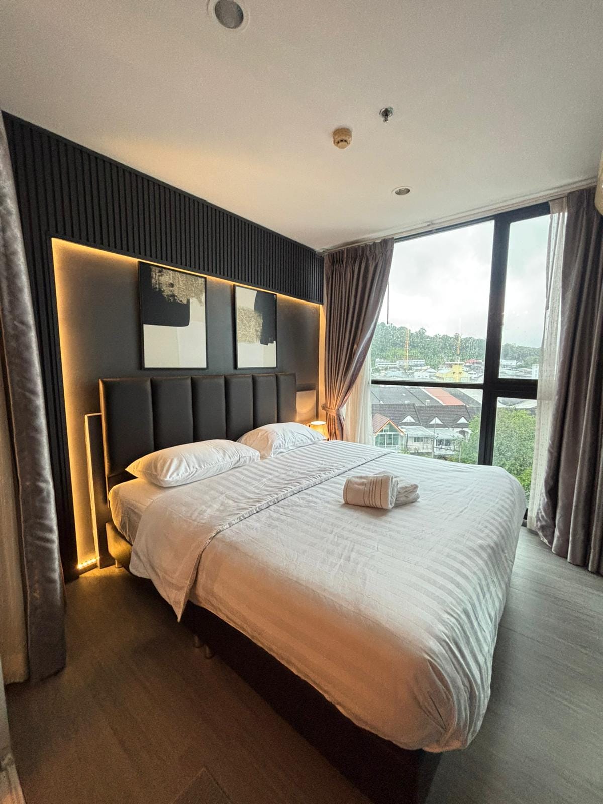 Un condominio muy espacioso y hermoso en el corazón de Phuket (Phuket Town), puedes ver el Glimpse of Spectacular Sunrise 🌄 desde la cama, todo 🛌 el apartamento tiene mucha luz solar 🌞 durante todo el día con mucha energía y buenas vibraciones positivas. ✨ Hay dos espacios de trabajo dedicados organizados para los huéspedes que trabajan desde casa con wifi de muy alta velocidad con router privado. Todo el apartamento está elegantemente decorado y la cocina está totalmente equipada con la nueva lavadora que se acaba de agregar 😊