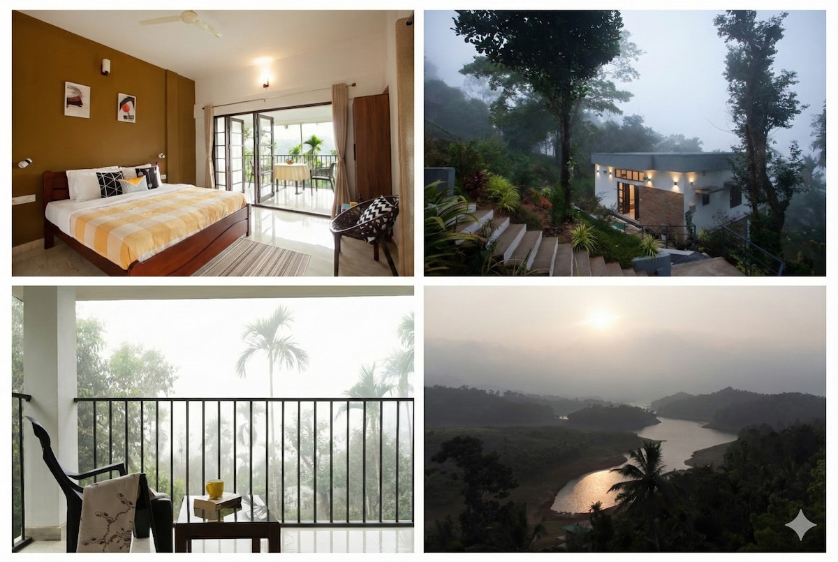 Welcome to Darpan Banasura, a 2-bedroom lake-view homestay near Banasura Dam, Wayanad, with beautiful views of the lake and Banasura Hills. Both bedrooms open to a huge private balcony overlooking the water. This peaceful retreat features a modern kitchenette, cozy interiors, and a scenic setting close to boating, hiking, and sightseeing spots. Bonfire available on request. Perfect for families, couples, and nature lovers seeking comfort and calm.