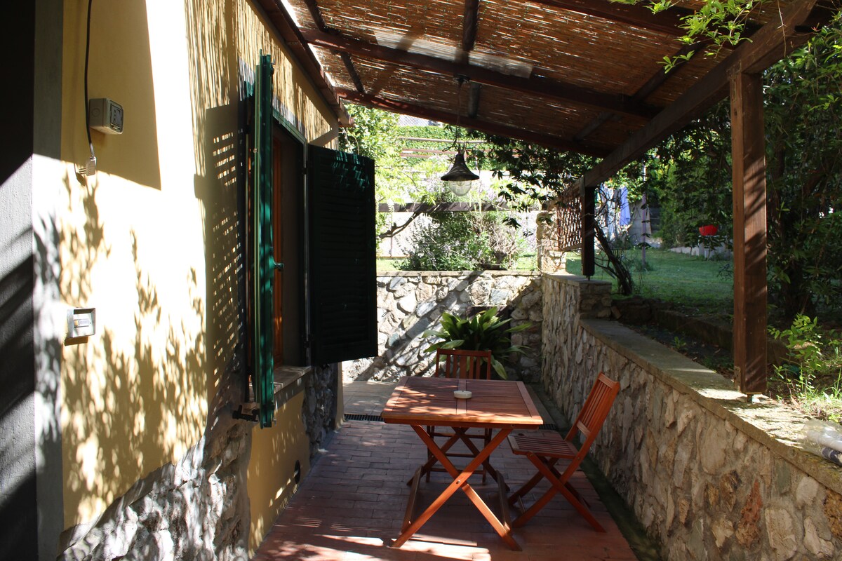 Delizioso appartamento arredato con cura, in stile etnico, provvisto di ogni comfort, in un casolare appena ristrutturato secondo i principi della bioedilizia, immerso nella macchia mediterranea del più bel versante dell'isola d'Elba, con vista mozzafiato sull'arcipelago toscano e sulla Corsica, a 250 m sul livello del mare, dominante la spiaggia di Cavoli. L'appartamento è composto di soggiorno con angolo cottura e divano-letto per due persone, camera matrimoniale e bagno con doccia e ampio spazio esterno attrezzato per pranzare e prendere il sole. Il luogo è raggiungibile con una strada sterrata di 2,5 km dal paesino di San Piero in Campo (fin dove arrivano i mezzi pubblici), distante pochi minuti di macchina dalle spiagge più incantevoli dell'isola (Cavoli, Seccheto, Fetovaia) e dal centro turistico e commerciale di Marina di Campo. E' consigliabile disporre di un mezzo proprio. La casa è immersa nella tipica macchia mediterranea alternata a grandi e suggestive scogliere di granito. Il grande giardino è recintato, contiene un orto e un uliveto. Non vi sono altre abitazioni nei dintorni. Intorno alla località si snodano i più suggestivi sentieri per gli amanti del trekking e della mountain bike. Ideale per chi è in cerca di silenzio, relax, aria pura, e ama la natura e i luoghi un pò speciali. I padroni di casa potranno aiutarvi per ogni evenienza e perplessità. BREATHTAKING VIEW ON THE ARCHIPELAGO Charming apartment,furnished in ethnic style,with every comfort,in an old cottage just renovated according to the bioarchitecture,amidst the Mediterranean bush in the most beautiful part of Elba island with breathtaking views on the Tuscan archipelago and (email hidden) a.s.l.,overlooking famous Cavoli beach. The apartment has a living room with kitchenette and divan bed for two persons,a double bedroom and a bathroom with shower and a large outside patio for eating and sunbathing. You can reach the place through a 2,5 Km dirt road from San Piero in Campo,where pubblic transport ends,and from where ,in few minutes by car you can get to the best beaches of the island (Cavoli,Seccheto,Fetovaia etc.),and to the touristic and service centre of Marina di Campo. It's better to have your own car or motorbike(you can rent it anywhere on the island). The house is surrounded by the typical mediterranean bush scattered with huge granite cliffs. The large garden has an olive grove and a vegetable garden. The place is secluded and there are no other houses in the surroundings. It's an ideal place for trekking and mountain biking and lovers of relax,peace,nature and special places. Your host are ready to help for any need and request.