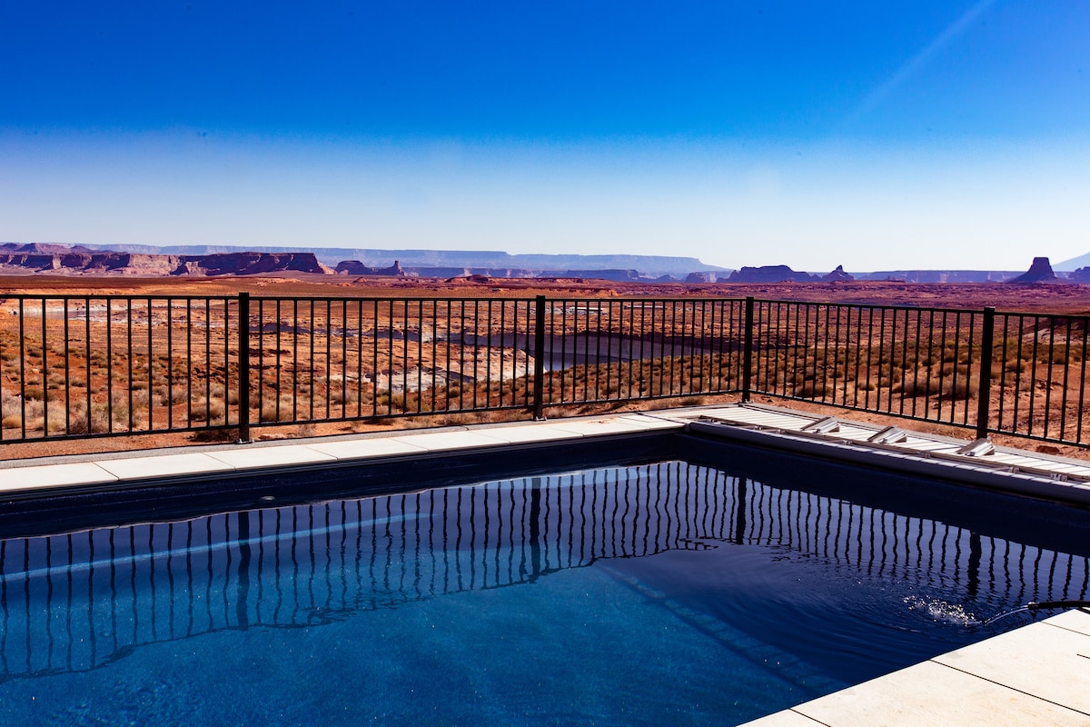 ¡Esta NUEVA casa de 4 dormitorios y 2,5 baños tiene capacidad para 13 personas y está construida tanto para la aventura como para la relajación! Disfruta de vistas panorámicas del lago Powell y del desierto desde la terraza de la azotea o mientras te sumerges en el jacuzzi privado. Con una sala de juegos, una cocina espaciosa y un montón de asientos, es perfecto para familias o amigos. La casa base ideal para explorar Antelope Canyon, Horseshoe Bend y Lake Powell: ¡reserva tu estadía hoy mismo!