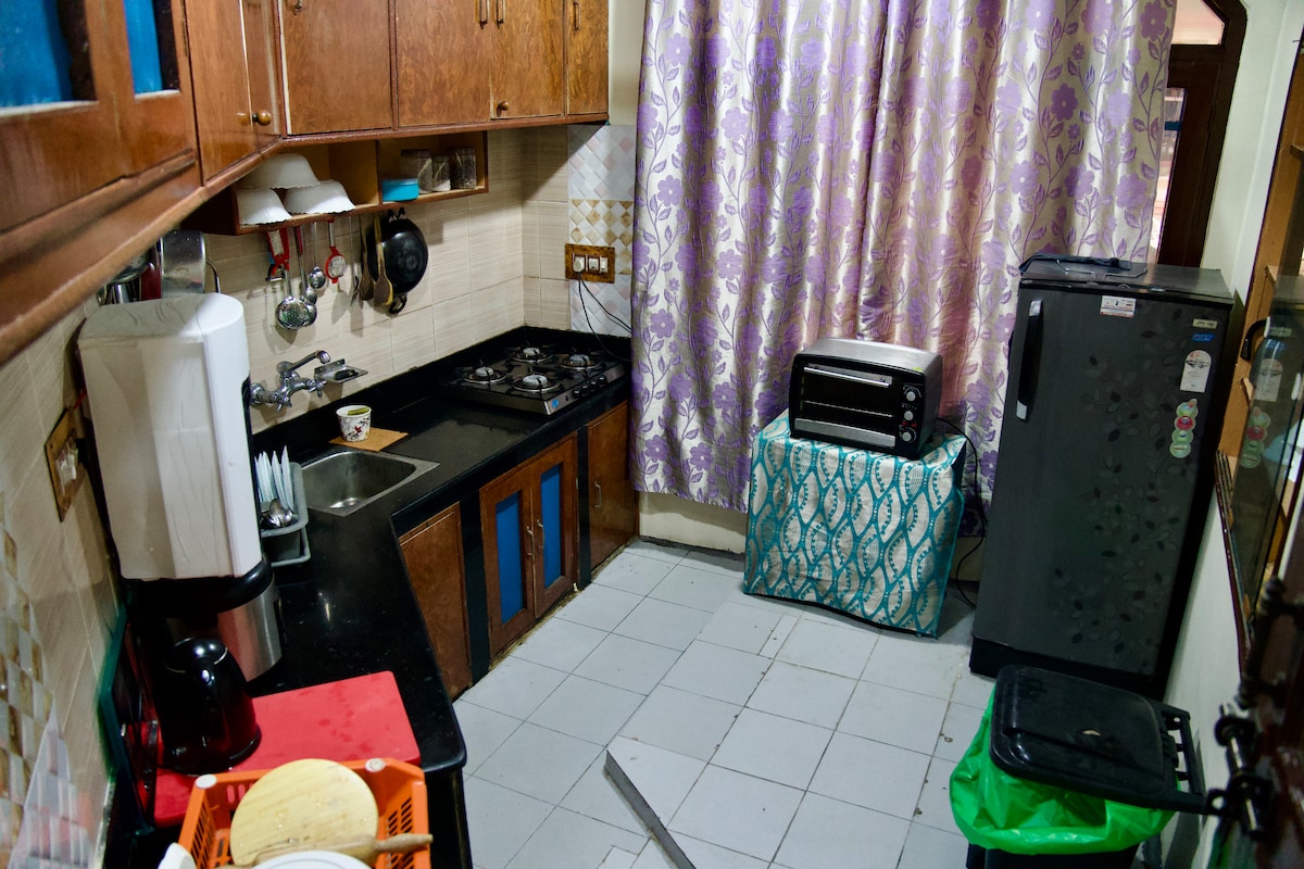Relájate con tu familia en este tranquilo y moderno alojamiento. El departamento está totalmente equipado con todas las instalaciones, incluida una cocina moderna totalmente funcional. El departamento “B4” está en el segundo piso y tiene una hermosa vista de los campos verdes. Un espacio tranquilo y meditativo rodeado de naturaleza. Este lugar es ideal para una pareja. Ubicado cerca de los famosos jardines mogoles con lago, bosques y senderos de senderismo a pocos minutos de distancia