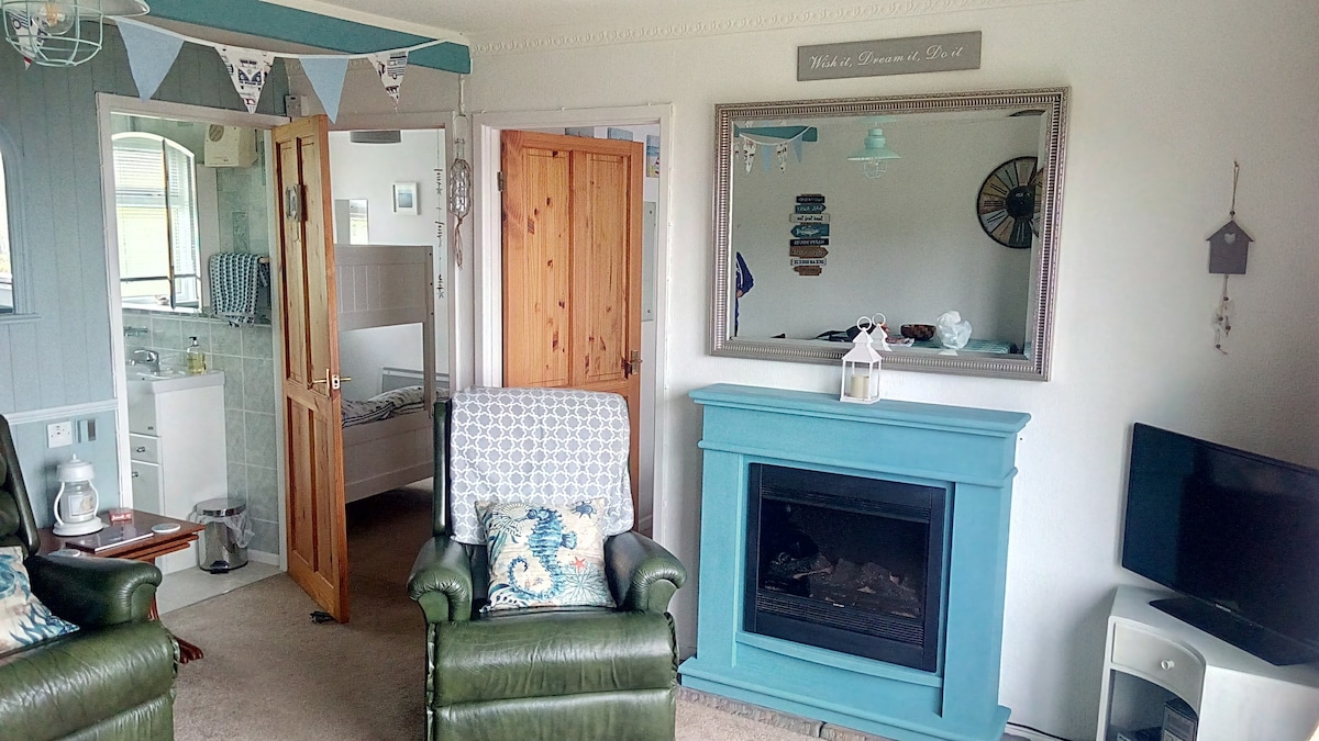 Cómodo chalet de 2 dormitorios para alojar a 4 personas. Sofá cómodo y lo suficientemente largo para 1 adulto adicional (por acuerdo separado). ROPA DE CAMA PROPORCIONADA PARA LAS CAMAS DOBLES E INDIVIDUALES, TOALLA DE MANO, GUANTE DE HORNO Y ALFOMBRILLA DE BAÑO. * Trae tus propias toallas o pídelas en la lavandería por 8 £ por paquete * La electricidad se mide. Por favor, trae monedas de 1 libra. Obviamente, el coste es mayor en invierno que en verano. Precio actual de verano alrededor de 2-3 £ al día, invierno 4-5 £ al día cuando se usan todos los calentadores.
