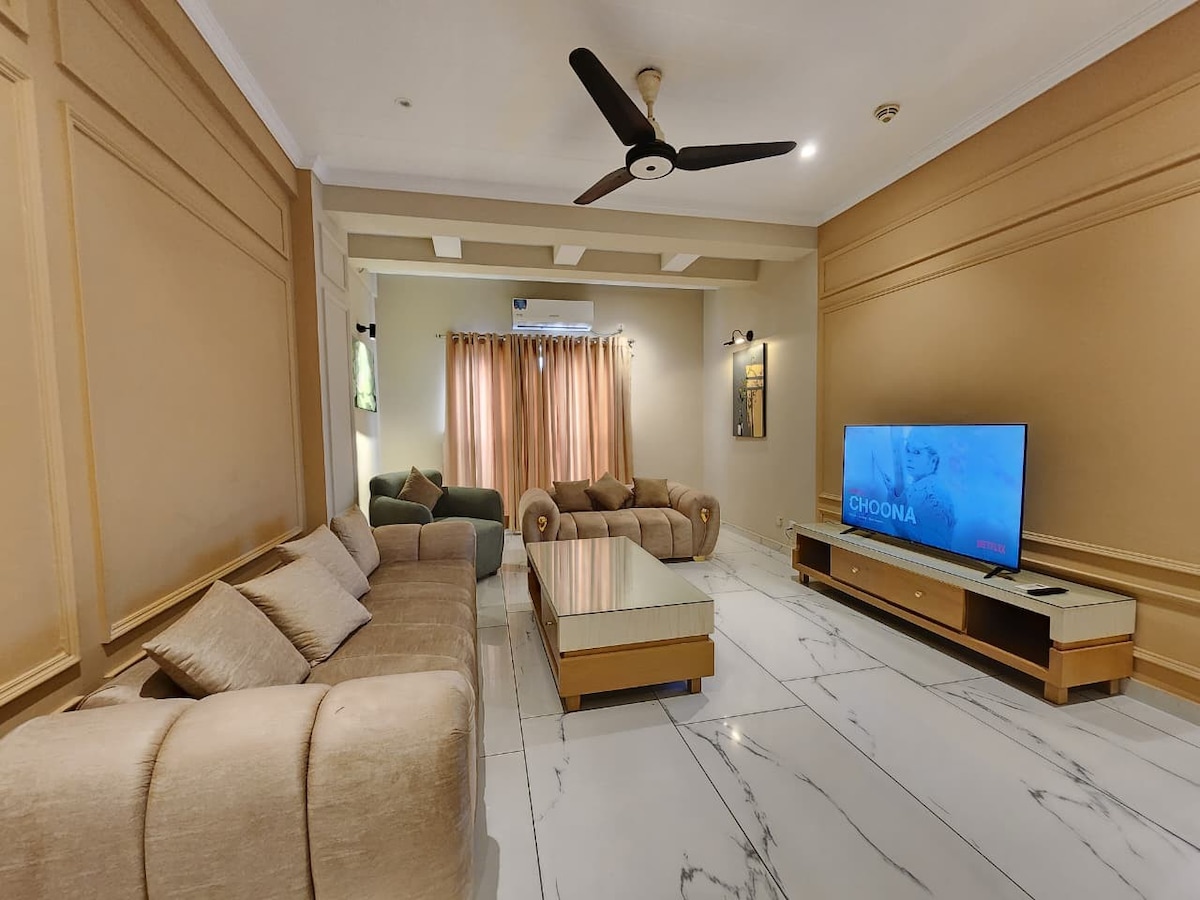 ¡Te damos la bienvenida a The Golden Lodges! Soy Haider, tu anfitrión para una estancia inolvidable. Ubicado en el Centro Cívico de Bahria Town, nuestro apartamento de un dormitorio ofrece elegancia moderna y un diseño cuidado. Con servicios como aire acondicionado, wifi y una cocina totalmente equipada, tu comodidad es nuestra prioridad. Reserva ahora para una experiencia sin estrés llena de risas, amistad y tal vez incluso un toque de travesura. ¡Nos vemos pronto!